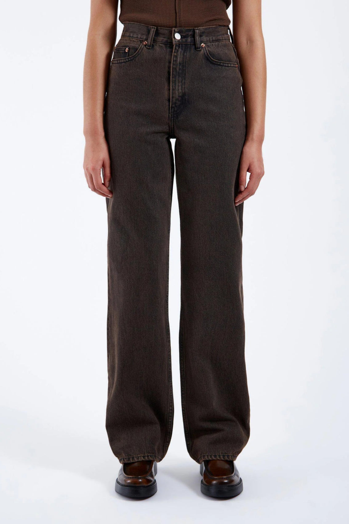 Relaxed low-rise fit with a straight, wide leg. The hem is slightly tapered to fit snugly over your shoes. Size up inseam for added volume. Made from 100% cotton denim.
