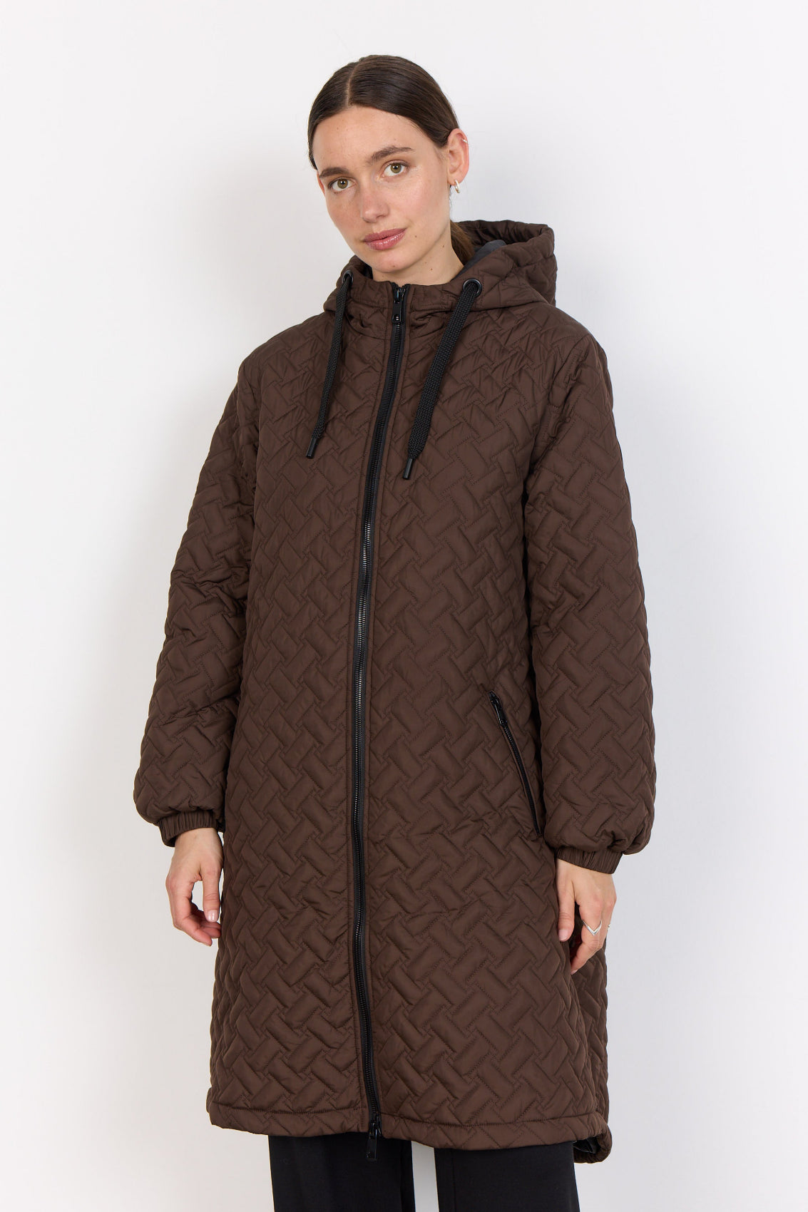 This coat features a quilted pattern, adjustable hood with drawstrings, full-length zipper, and side pockets. Pair it with jeans and boots for a stylish yet comfortable look.