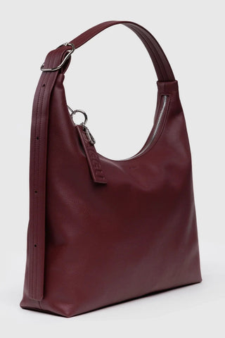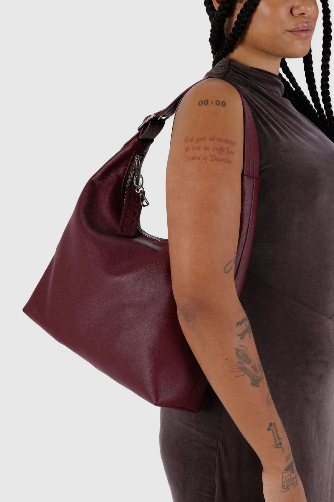 - Wide tooth zipper with 100% recycled leather pulls with embossed logo