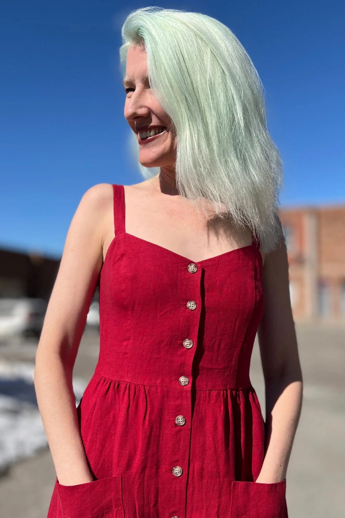 La robe Thistlebird fait son grand retour dans son lin prélavé signature et en denim brut. Cette pièce incontournable de l'été allie simplicité et élégance avec ses poches plaquées, sa jupe froncée et sa rangée de boutons chinés. Parfaite pour tous les jours, elle se porte facilement du matin au soir.