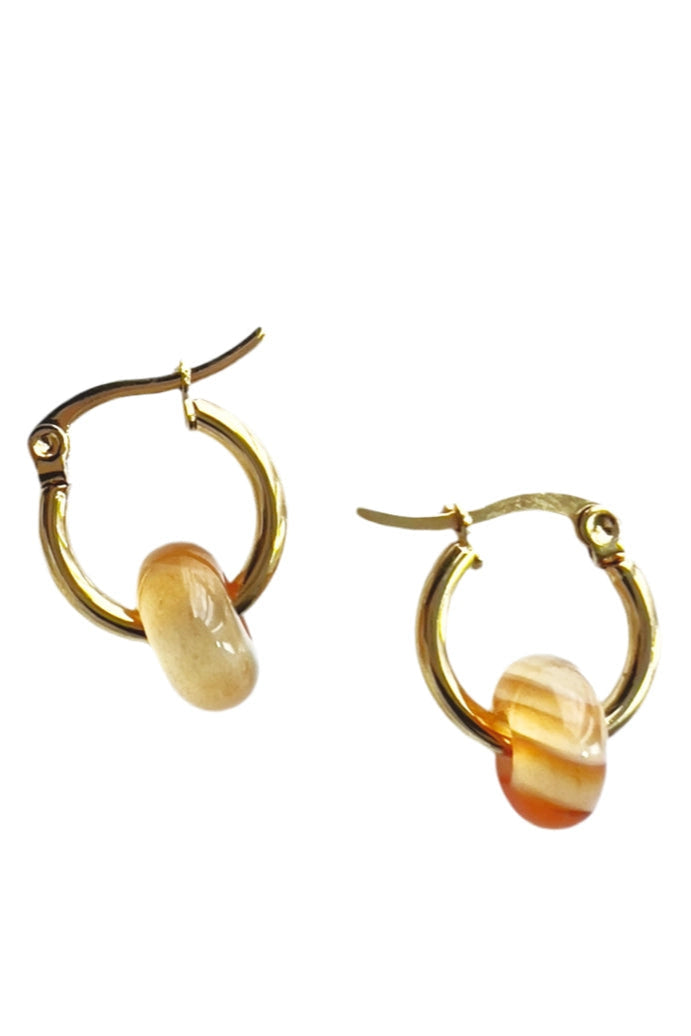 Description Make a wish and add a pop of color to your outfit with these pretty mini natural stone hoop earrings! Each hoop is adorned with a pretty natural stone bead for a minimalist and delicate touch. Perfect for the trendy and hipster at heart! (Don't forget to make a wish while wearing them!)