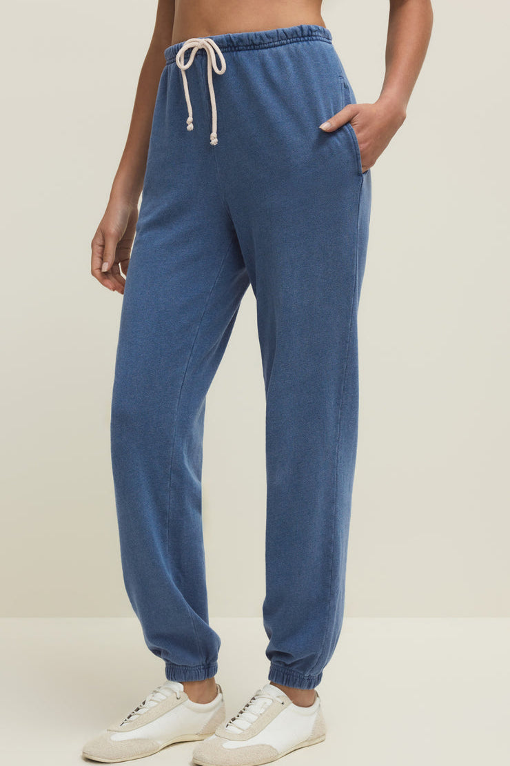 Ce pantalon de jogging allie l'allure du denim à la douceur du molleton pour un confort optimal tout au long de la journée. Sa taille élastiquée avec cordon de serrage, ses poches latérales et sa coupe fuselée créent une silhouette flatteuse et décontractée qui vous accompagnera partout.