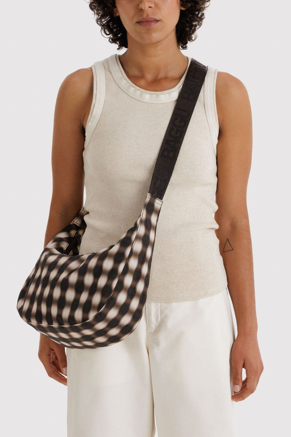 Pratique ne doit pas être ennuyeux. Le sac moyen en nylon Crescent est décontracté et assez grand pour transporter plus que l'essentiel. Portez-le en bandoulière ou en bandoulière pour une expérience mains libres. Complet avec deux poches intérieures qui facilitent l'organisation.