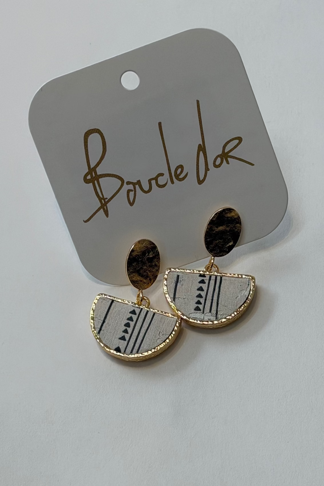 Crochets d'oreilles : Puce ovale (16 x 9 mm), finition martelée mate, plaquée or 18 carats sur laiton, certifiée sans nickel.