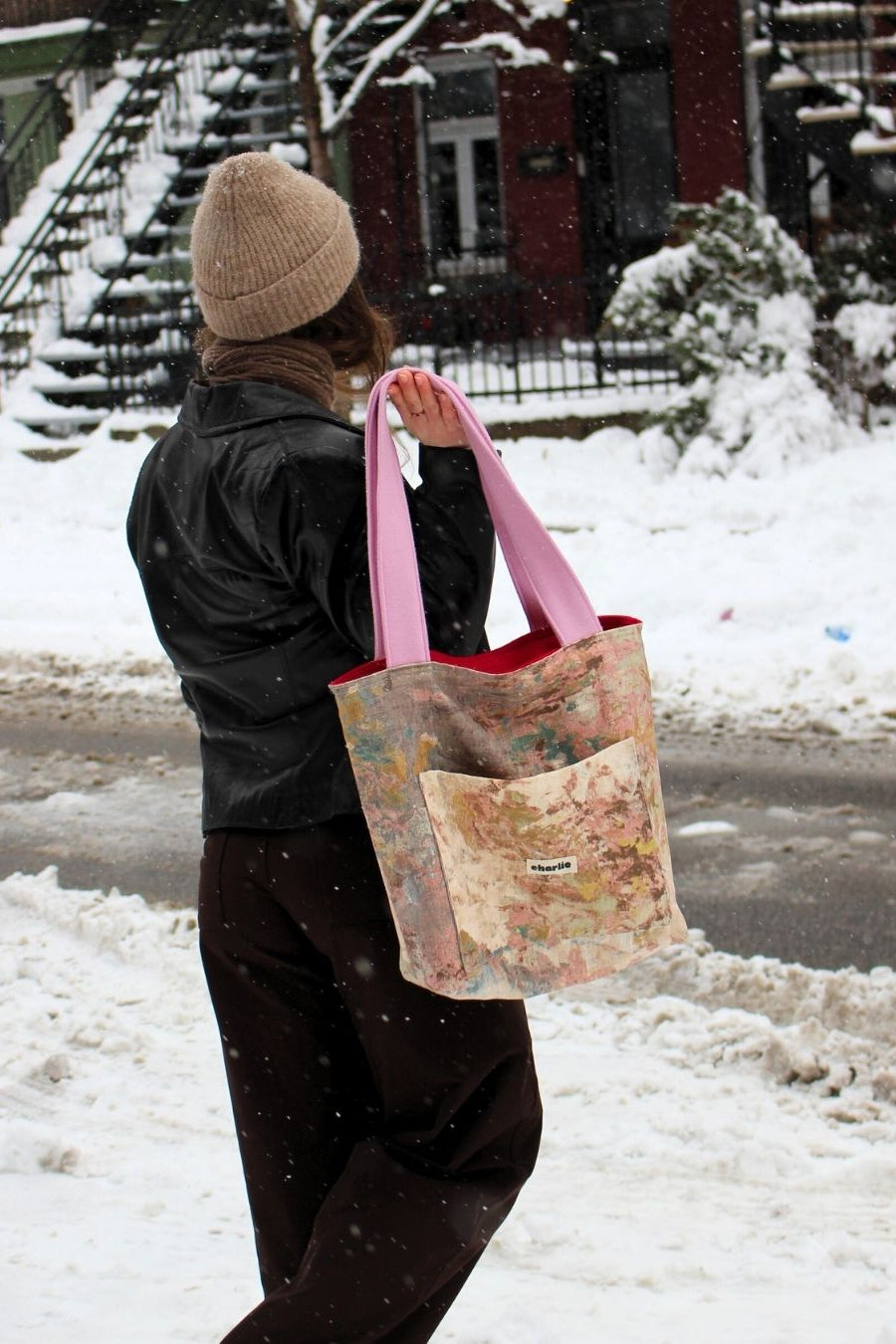 En choisissant un sac Charlie, vous contribuez activement à la réduction des déchets textiles. Chaque pièce est conçue à partir de tissus revalorisés, donnant une seconde vie à des matériaux autrement destinés à être jetés. Cette démarche s’inscrit pleinement dans une logique d’économie circulaire, et favorise une consommation responsable et locale.