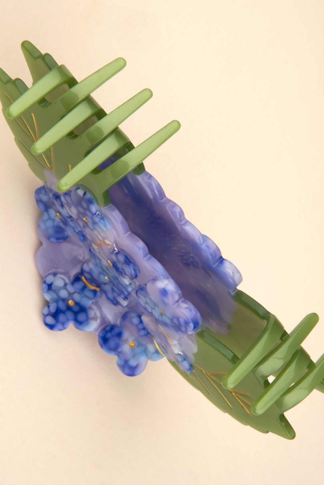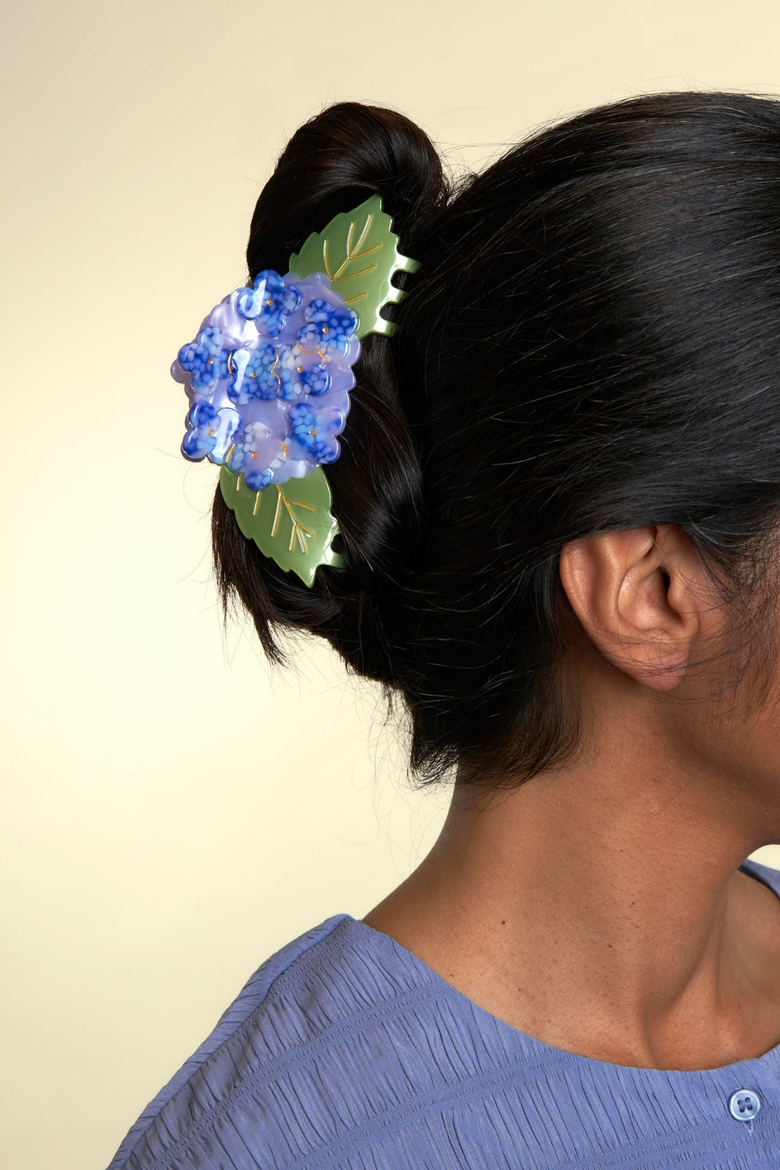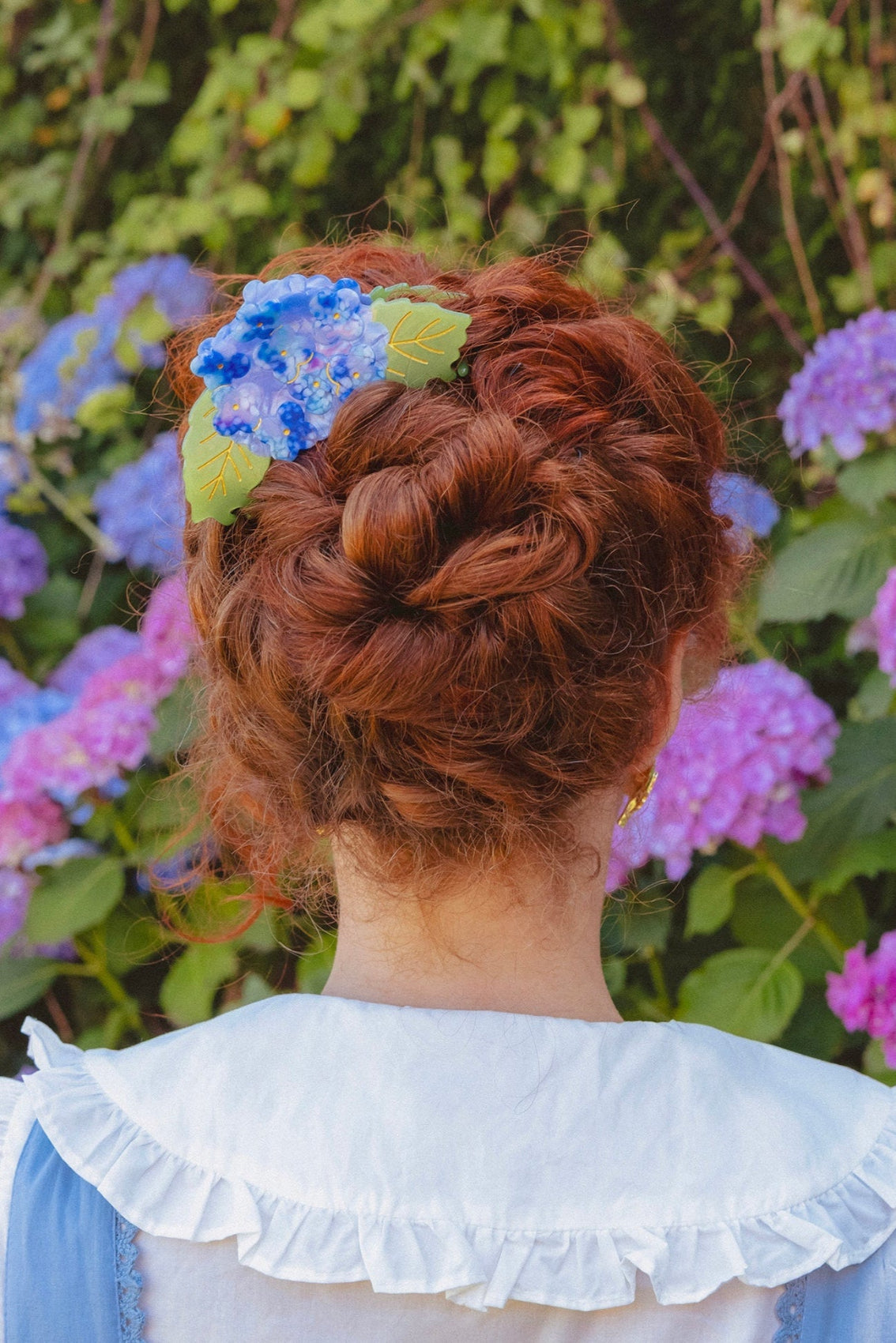 La famille des pinces à cheveux XL s’agrandit avec cette magnifique pince à cheveux hortensia ! Un véritable bijou avec ses fleurs en relief aux nuances bleues et lilas qui reproduisent les merveilles de la nature. De quoi faire des coiffures des plus romantiques et somptueuses !