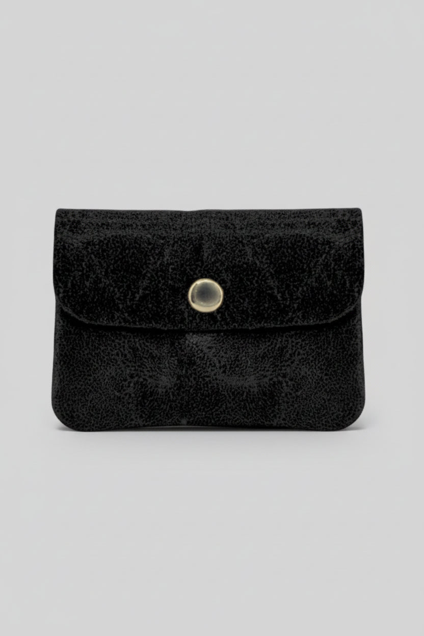 Ce portefeuille compact en cuir véritable avec finition en suède est l'accessoire idéal pour ceux qui recherchent fonctionnalité et style dans un design petit et élégant. Parfait pour transporter l'essentiel avec confort et sécurité.