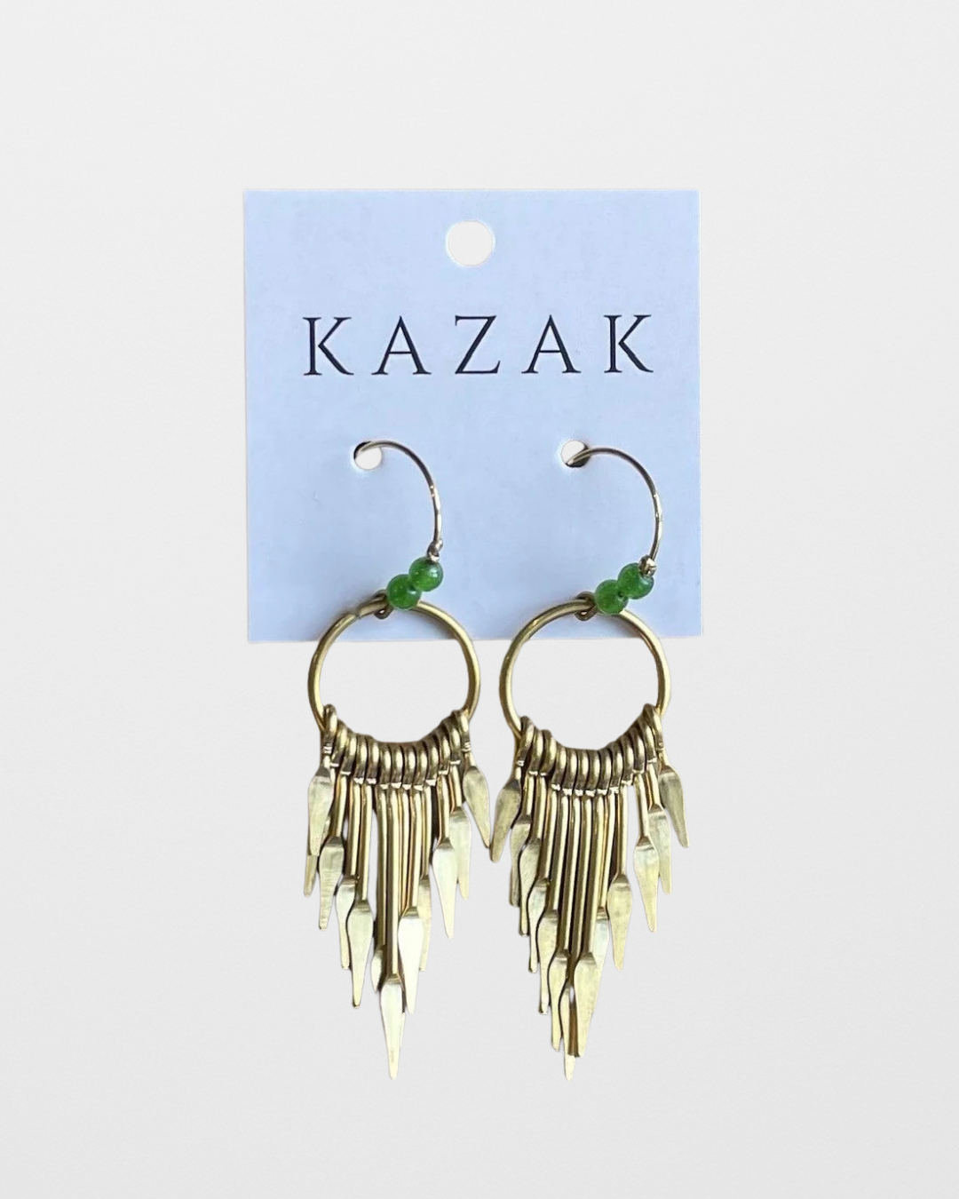 Boucles d'oreilles fait de laiton, de billes artisanales et de pierre semi précieuses.